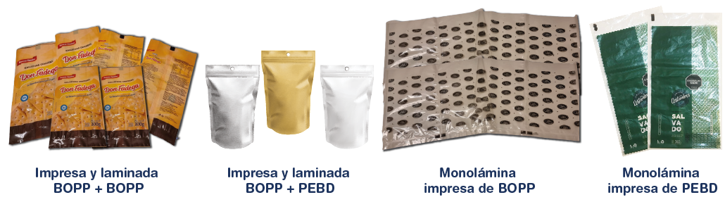 División flexibles / Productos impresos y no impresos. Todos nuestros diferentes envases flexibles para destacar, visualizar, promover y proteger su producto.